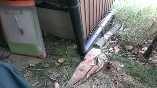 お風呂に入口付近に巣を構えられてしまった、冬季のパターン。(兵蟻も出入り)