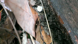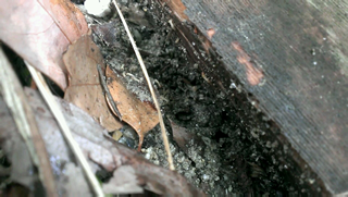 お風呂に入口付近に巣を構えられてしまった、冬季のパターン。(兵蟻も出入り)